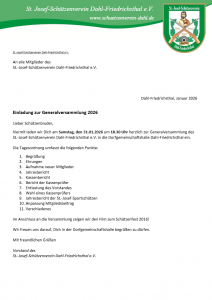Generalversammlung 2026 Beitrags-Autor:Jonas Beitrag veröffentlicht:8. Januar 2026 Beitrags-Kategorie:Allgemeines / Schützenverein Das könnte dir auch gefallen Josefstag 22.03.2024 9. März 2024 Schützenball 27.01.2024 7. Januar 2024 Schützenball 2026 5. Januar 2026